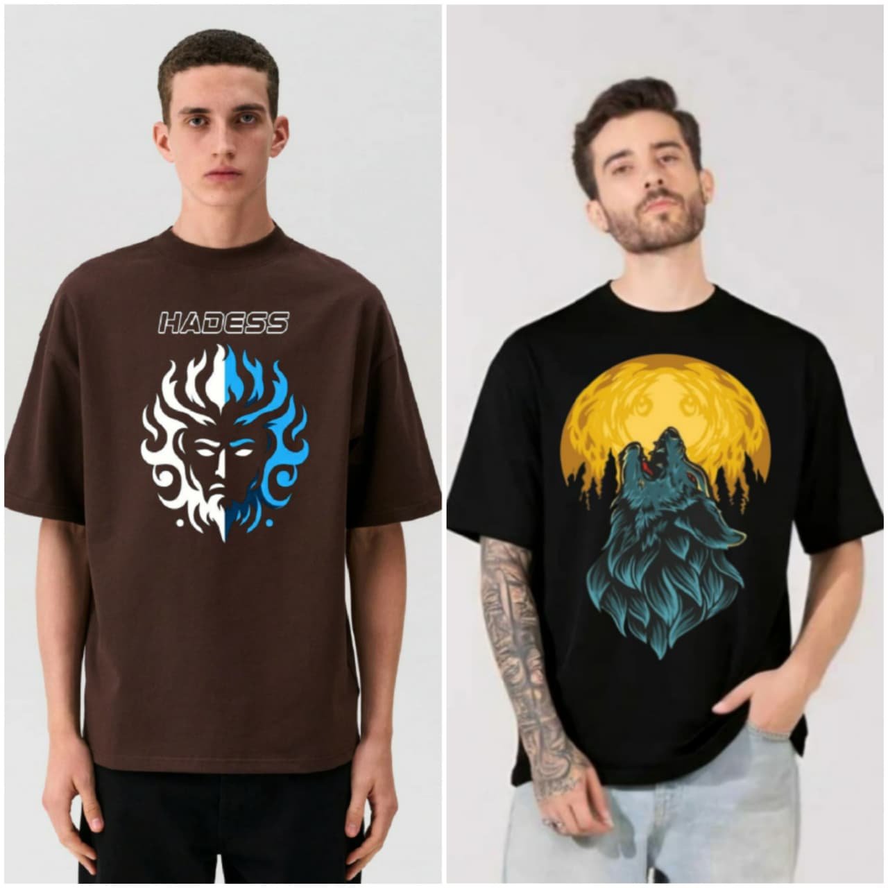 100% Cotton Combo Of 2 Printed Mens Oversized , best matching with Jeans Trousers in casual wear.
