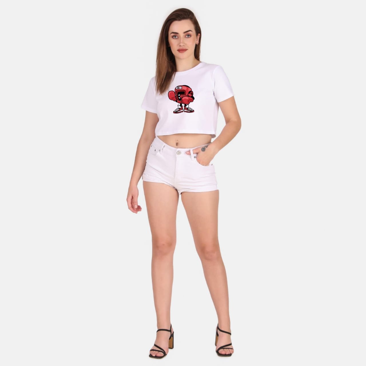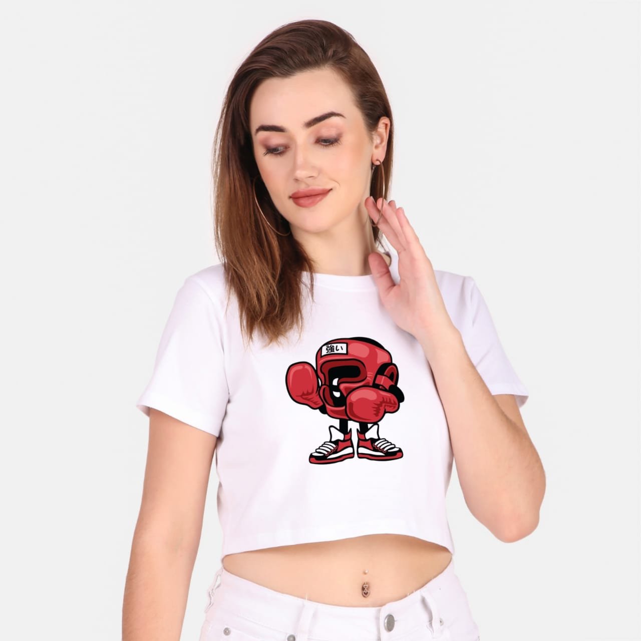 190 GSM Bio Washed and Enzyme washed  100% Cotton Printed Crop Top, best matching with Jeans Trousers in casual wear.